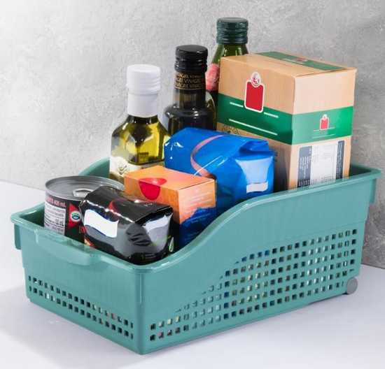 Очень удобный контейнер. Размер подходящий, удобно выкатывается на колесиках, есть ручка за которую удобно держать и выкатывать. Брала для хозяйственных инструментов, но очень хорошо вписался на полочки в холодильнике. Брала еще и узкий контейнер, они вместе удачно дополняют друг друга. Поэтому для хозяйственных вещей закажу еще.
