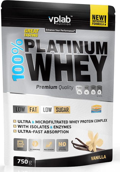 В состав продукта входит комбинация из ультрафильтрованного концентрата и микрофильтрованного изолята сывороточного протеина, полученного из молока коров травяного откорма. Протеин имеет наивысшую биологическую ценность, быстро активизирует и усиливает рост мышц, помогает поддерживать сухую мышечную массу. Он также содержит комплекс DigeZyme™ — стойких к желудочным кислотам энзимов, которые помогают организму лучше расщеплять и усваивать белок. 100% Platinum Whey произведен без добавления кристаллических аминокислот, что значительно выделяет его среди аналогов. Помимо всего, 100% Platinum Whey отличается низким содержанием жира и сахара, что позволяет идеально сочетать его с любым рационом питания.