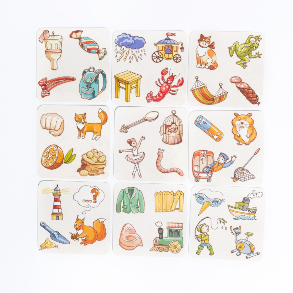 Игру рекомендую. Развивает речь, фантазию и при этом очень приятно, интересно играть и детям, и взрослым. Сначала детям 5 и 10 лет было затруднительно найти рифмы, но через пару игр фантазия включилась и уже не оставляют шансов маме. Качество коробочки отличное, а вот карточки из очень тонкого картона, нуждаются в ламинации, если есть намерение играть не один год. Хотелось бы и размер карточек больше, но что имеем, то имеем. Картинки приятные, забавные, правильные для детского восприятия. Рекомендую и детям, и взрослым.