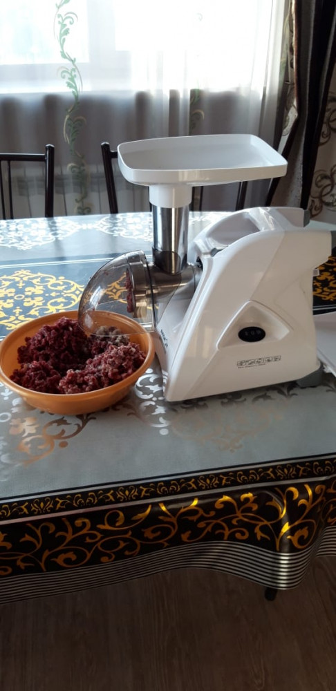 Отличная мясорубка, качественная, есть экран для защиты от брызг. Во время работы шумит, за то фарш получается идеальным, зернистым. Особенности мясорубки соответствуют. Дополнительно есть 3 запасных колпачка. Гарантия 3 года.