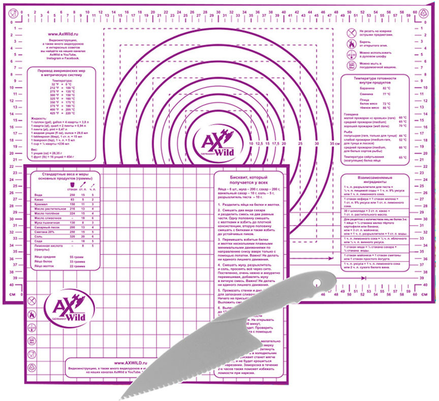 Очень довольна покупкой, коврики легко моются,удобны в использовании + суперский нож! Для информации любителям бешбармака:для раскатывания бешбармачных лепешек коврик маловат, нужно рассматривать размером побольше,я это не учла. К качеству претензий нет!