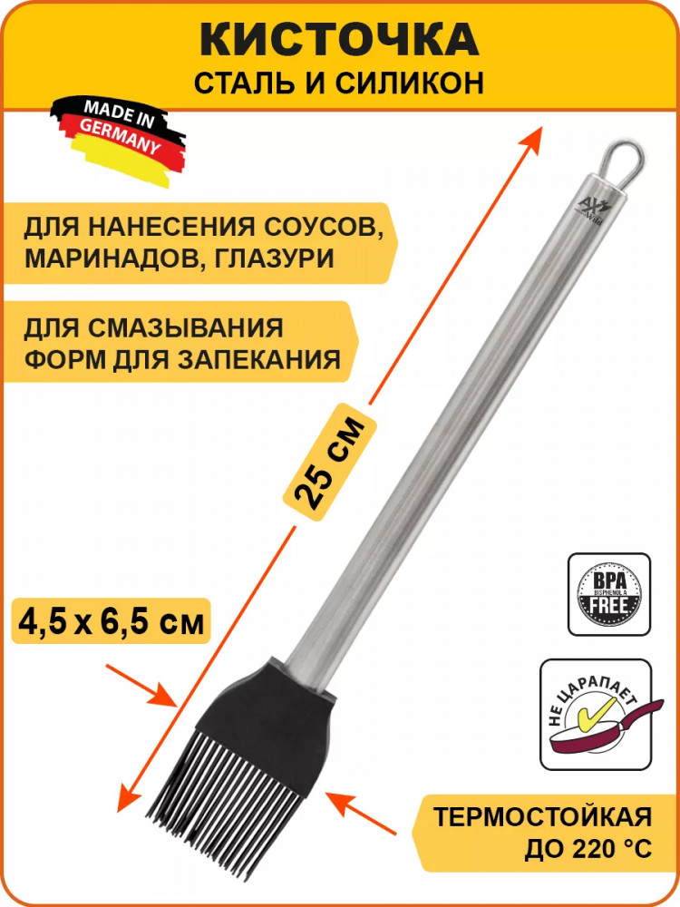 Классная кисточка. 3 года активного пользования. Не плавится. Мою в посудомойке.