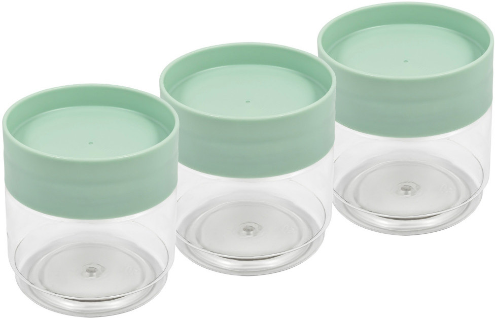 Приобрела несколько наборов этих банок. В целом довольна. Дизайн, удобство, цветовая гамма на высоте! Единственный минус на мой взгляд - это цена. Пластик баночек как на блистерной упаковке, он проминается! То есть баночки не твердые! Цена для такого пластика , я считаю, завышена. За это снимаю одну звезду.