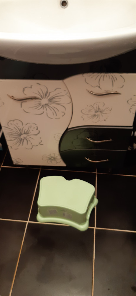 Удобная и яркая подставка для деток с резиновыми вставками, чтобы не скользит по плитке. Отличное решение для деток, которые не достают до раковины