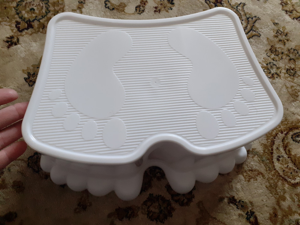 Удобная подставка для ребёнка. Доя моей дочки 3 года, оказалось, что низковата, она ростом ещё примерно 88-90 см. Пластик твёрдый, внизу есть удобная "ручка" для переноса. дочка везде с собой таскает, лёгкий. форма в виде ног, прикольная. Упаковали в пупырчатую плёнку, хотя вещь не хрупкая, за это отдельное спасибо, несколько дней развлекало ребёнка