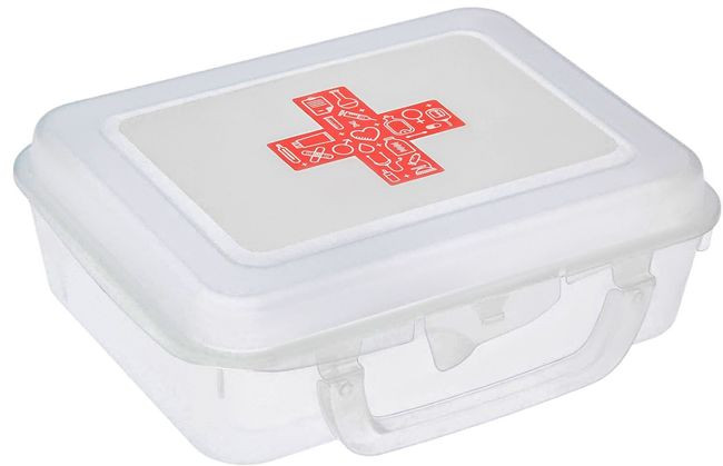 Аптечка понравилась. Правда рисунок креста на крышке не такой, как на фото, а просто нарисован красный контур креста и в нем мелкие рисуночки. Защелкивается легко. Пластик без запаха.