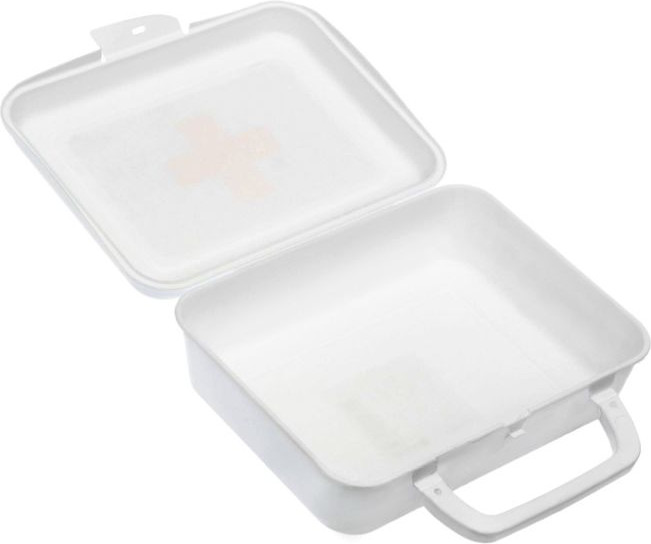 Аптечка понравилась. Правда рисунок креста на крышке не такой, как на фото, а просто нарисован красный контур креста и в нем мелкие рисуночки. Защелкивается легко. Пластик без запаха.