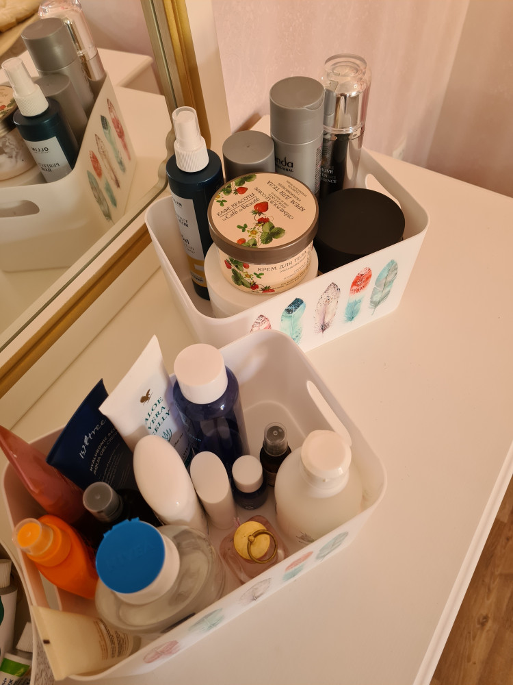 Взяла 2 корзинки для хранения моющих и чистящих средств на кухке и в ванной. довольна покупкой. Спасибо