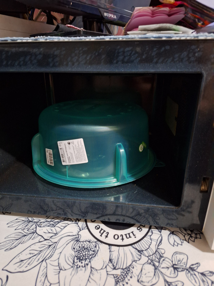 Удобная крышка, с ней не надо отмывать микроволновую печь каждый раз после разогрева жирной пищи.