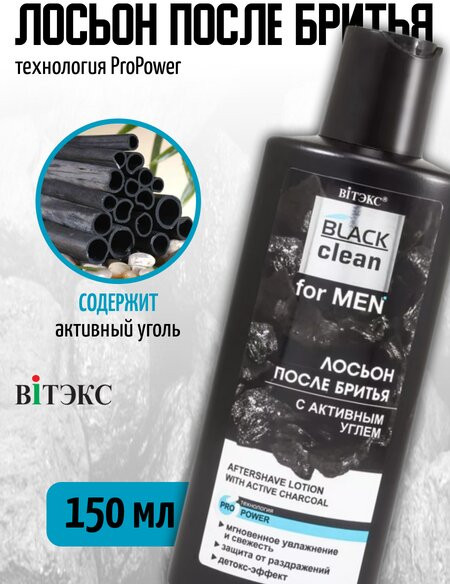 Вiтэкс Лосьон после бритья с активным углем-25% +36 не раздражает приятный запах охлаждает чувствительная кожа
