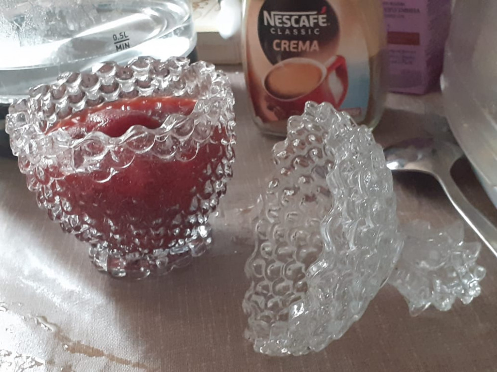 Сахарница среднего качества. Стекло с мелкими пузырьками, но в закрытом виде их не видно. Думали будет качество по лучше.