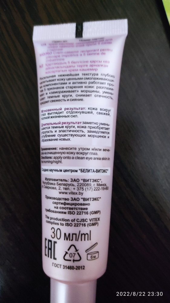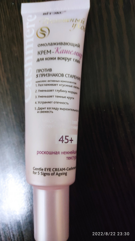 Вiтэкс Крем-кашемир для кожи вокруг глаз омолаживающий-25% +39 быстро впитывается лёгкая текстура увлажняет ненавязчивый аромат не омолаживает