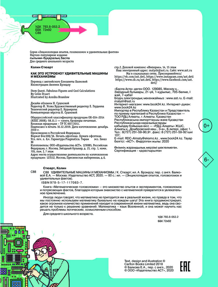 Как это устроено? Удивительные машины и механизмыВ данный момент этот товар отсутствует в продаже. Возможно, у нас найдется аналогичный или похожий товар здесь. Серия: Энциклопедия опытов, головоломок и удивительных фактов Инженерия нужна всем нам! В книге «Как это устроено? Как это устроено? Удивительные машины и механизмы» рассказывается о машинах и поездах, с помощью которых мы добираемся до дома, о аппаратах для космических и подводных исследований, о трубах и насосах, зданиях и многом, многом другом. Благодаря инженерному делу наша жизнь становится всё лучше и лучше. На страницах книги — огромное количество опытов и экспериментов, занимательных головоломок и интересных фактов об изобретениях и изобретателях. Для среднего школьного возраста. |