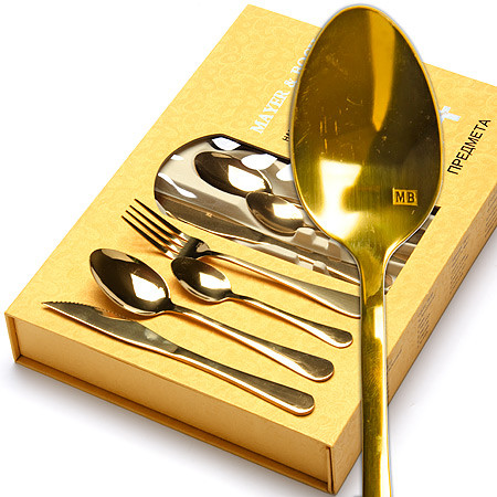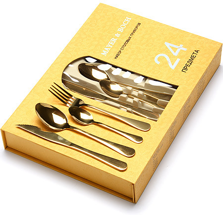 Mayer & Boch Набор столовых приборовВ данный момент этот товар отсутствует в продаже. Возможно, у нас найдется аналогичный или похожий товар здесь. Набор столовых приборов на 6 персон выполнен из высококачественной нержавеющей стали, ручки приборов имеют глянцевую полировку. Благодаря качественной полировке, изделия сохраняют прекрасный внешний вид на долгое время. Набор обладает не только оригинальным дизайном, но и практичностью, так как изделия из качественной нержавеющей стали имеют высокую прочность, устойчивость к коррозии, кроме того, нержавеющая сталь экологична, она не меняет вкусовые свойства еды, потому как не вступает в реакцию с ее компонентами. Упакованный в красочную подарочную коробку такой набор безусловно станет прекрасным подарком для любой хозяйки и украсит ваш праздничный стол. Подходит для мытья в посудомоечной машине. |
