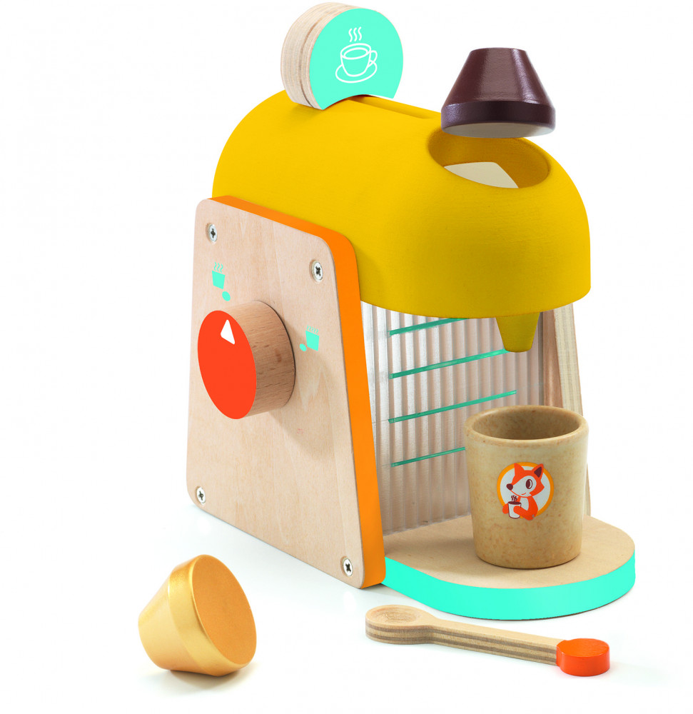 Замечательный набор «Эспрессо» от компании «Djeco» позволит ребенку расширить возможности сюжетно-ролевой игры на детской кухне. В наборе представлена кафе-машина, которая имеет яркий дизайн и выполнена из натурального дерева и аксессуары — чашечка и ложка.