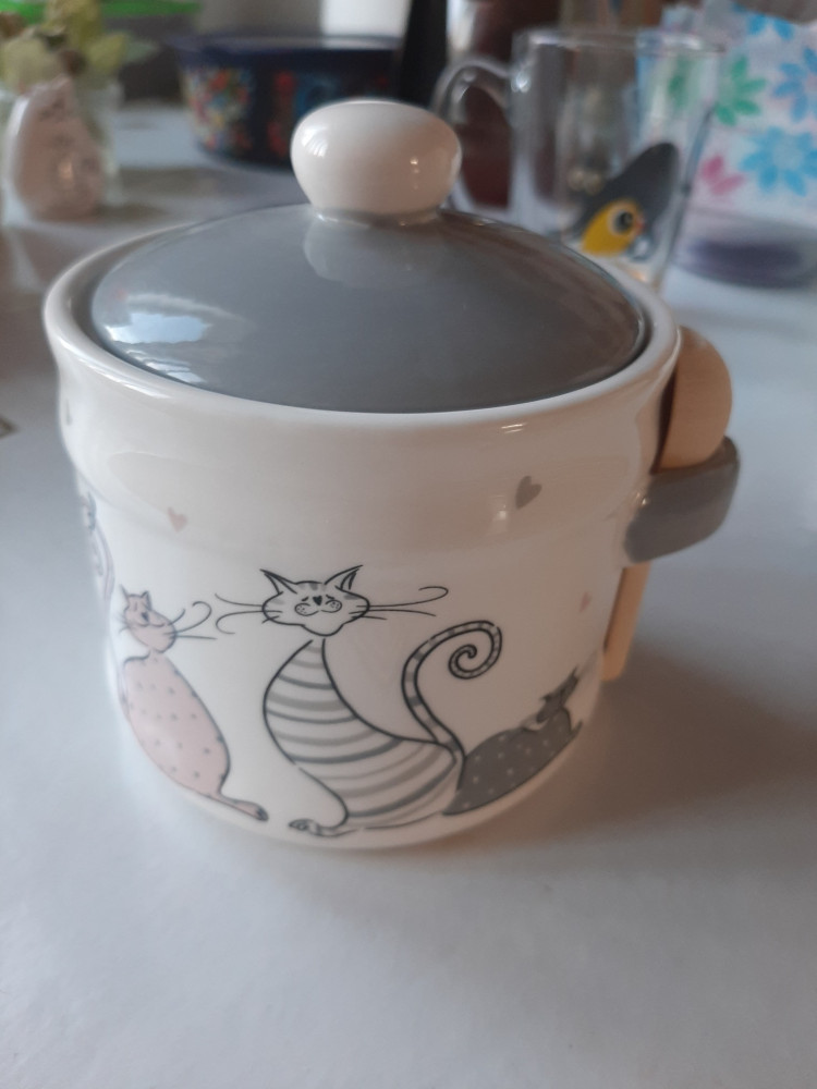 На момент заказа к сожалению сахарницы не было в наличии. Поэтому пока заказала эту баночку. Когда куплю сахарницу, то эту баночку буду использовать для соли. Баночка мне очень понравилась. Вообще обожаю керамику.