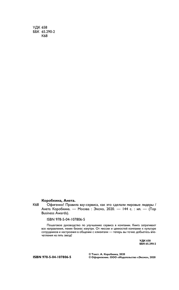 Серия: Top Business Awards Пошаговое руководство по улучшению сервиса в компании. Книга затрагивает все направления, меняя бизнес изнутри. От миссии и ценностей компании к культуре сотрудников и настроения в общении с клиентами — теперь вы точно добьетесь впечатления на пять звезд! |