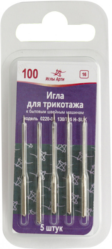 Универсальные иглы для швейных машин «Иглы Арти» изготовлены из металла высокого качества. Используются при пошиве трикотажа и многослойных материалов. Иглы имеют сферическую среднюю форму острия. Форма острия 05 соответствует международной классификации SUK.
