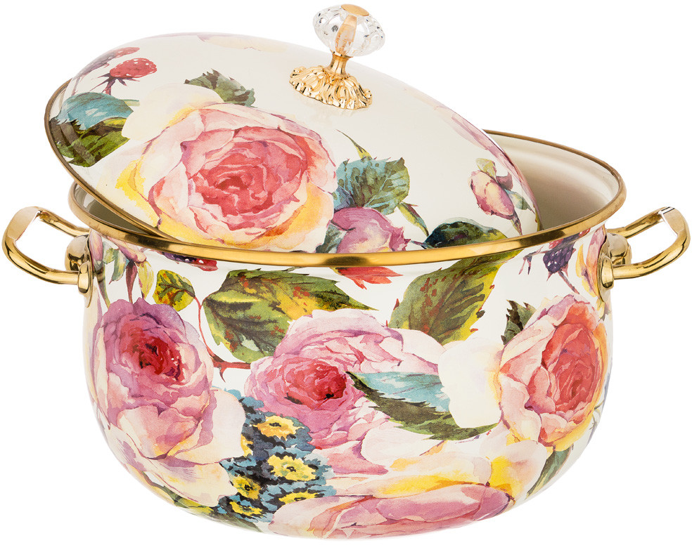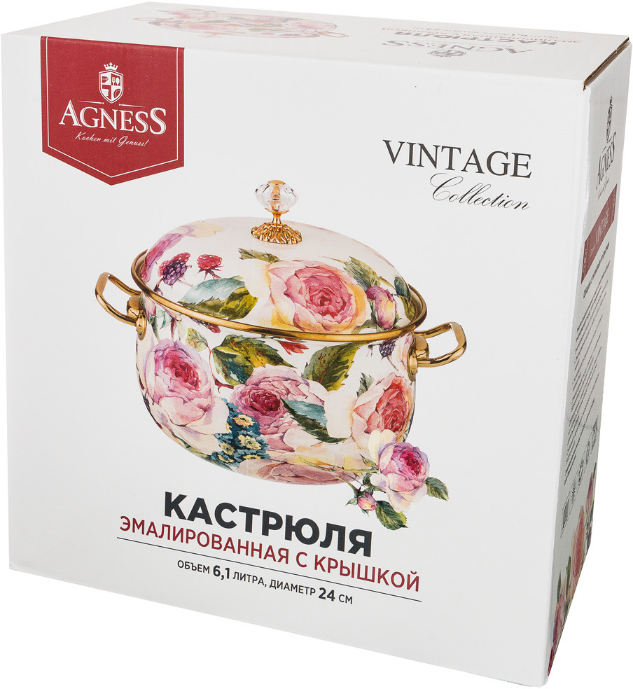 Кастрюля не тонкая, тяжеловата, эмаль покрыта лаком, сколов нет.6,1 литр.стоит дешевле всех. Этот обьем оказался удобным даже для двоих.