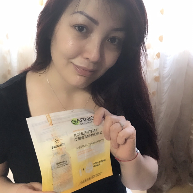 Недавно приобрела тканевую маску «Концентрат с Витамином С» от Garnier . Классно увлажняет и не оставляет липкости после использования, насыщает кожу энергией и сиянием☺️