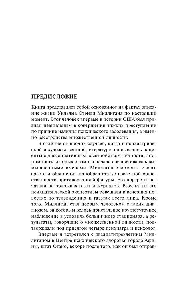 Очень интересная книга, замечательно написана, в дополнение можно посмотреть фильм про женщину с таким же феноменом: Сибил...