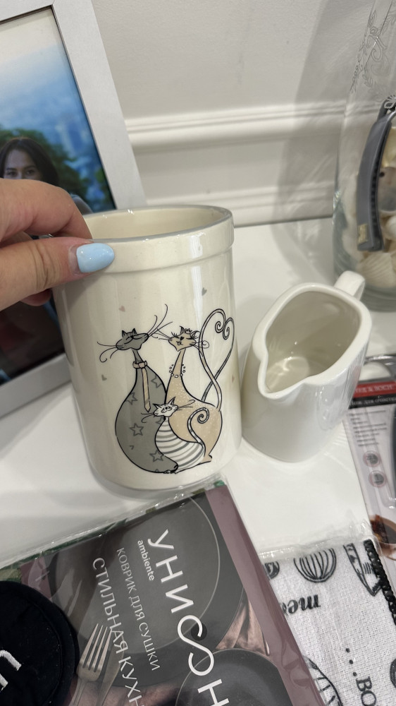 Все целое, красивое. Поварешка и 3 других предмета влезли и хорошо держатся. Мило смотрится
