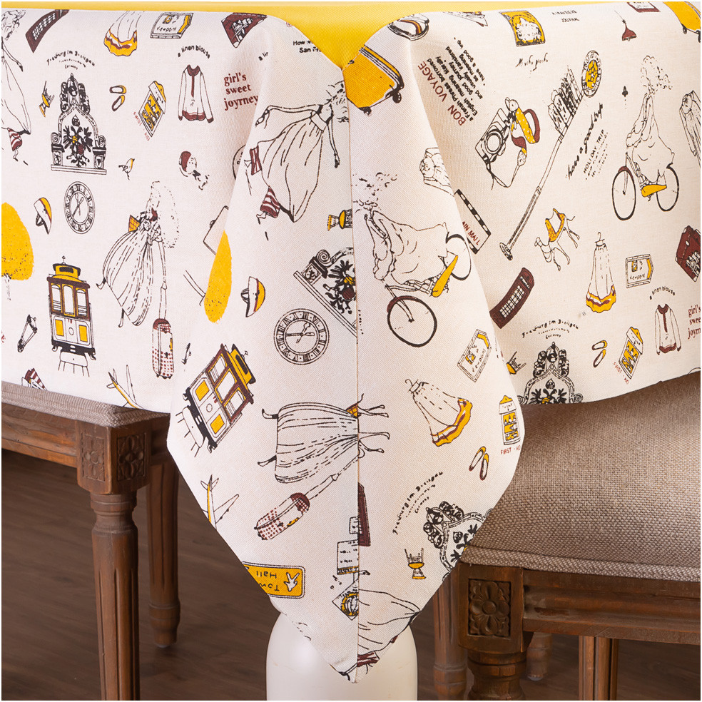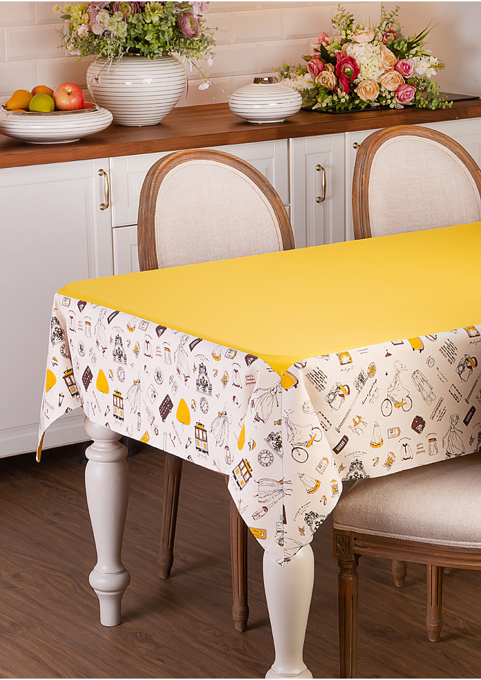 Покупкой осталась довольна! Скатерть по цвету яркая. Ткань плотная. А ещё порадовало, что обратная сторона скатерти просто однотонная, желтая, без рисунка! Временами можно перестилать с двух сторон. Здорово!