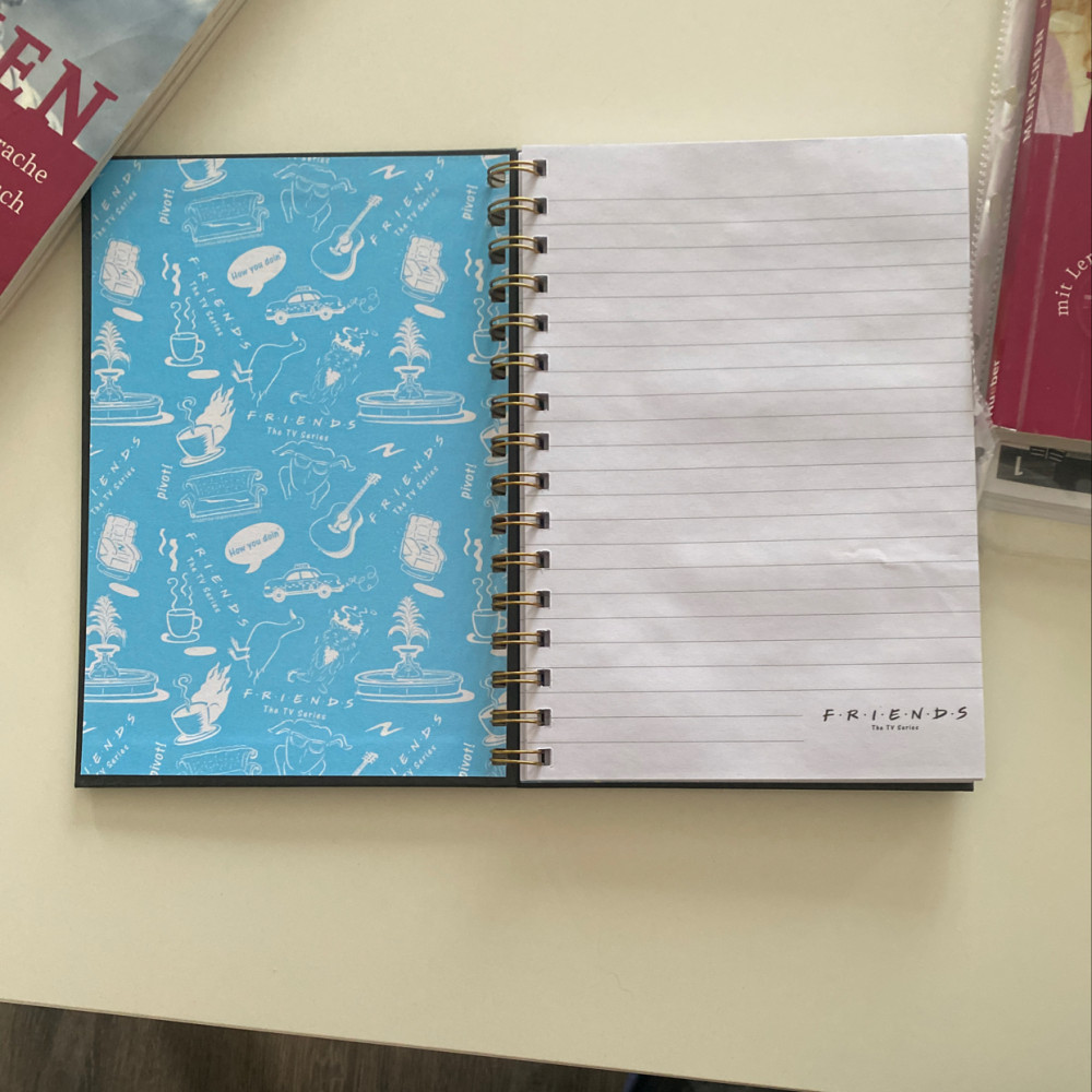 Книга для записей на фотографии кажется больше, поэтому даже не читая описания заказала ее, и только когда она пришла, я увидела что она на 100 страниц. Оказалась слишком тонкой, чем представлена на фотографии. Но выполнена в стиле сериала „Friends“, смотрится красиво как на фотографии. Единственный минус, что тоньше.