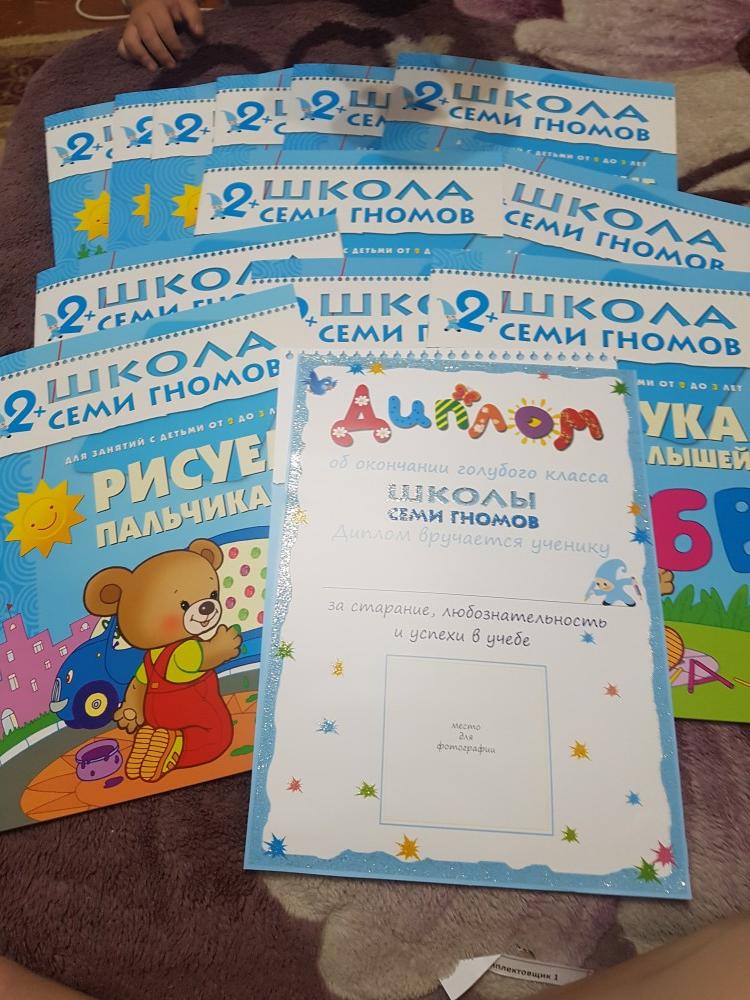 Моей дочке 2,2 года. Когда мы приобрели полный курс Школа Семи Гномов 2+, она заинтересовалась, начала смотреть и листать книжки. Теперь каждое утро у нас начинается со слова "Читать!". Занимаемся 2-3 раза в день. Конечно не все задания по силам, но со временем она справится и с ними. Очень нравится дидактический материал - картонные вкладыши. Благодарны flip.kz за быструю доставку!
