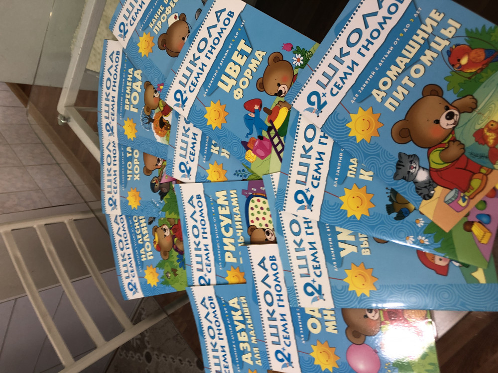 Когда собиралась заказывать, была под очень большим сомнением, и думала может сначала по одной две книжке заказать, чтобы посмотреть. Но все же заказала сразу годовой курс, нам очень нравится и мне, и ребенку самое главное! Иллюстрации большие красивые, в каждой книге есть родительская страничка как надо преподнести задание. Доступные задания ребенку для его возраста. Теперь жалею только об одном, что с года не занималась по школе семи гномов. А Флип порадовал быстрой доставкой! Спасибо вам!