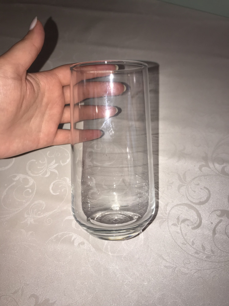 Отличный стакан, объем почти пол-литра и форма красивая с зауженным горлышком.