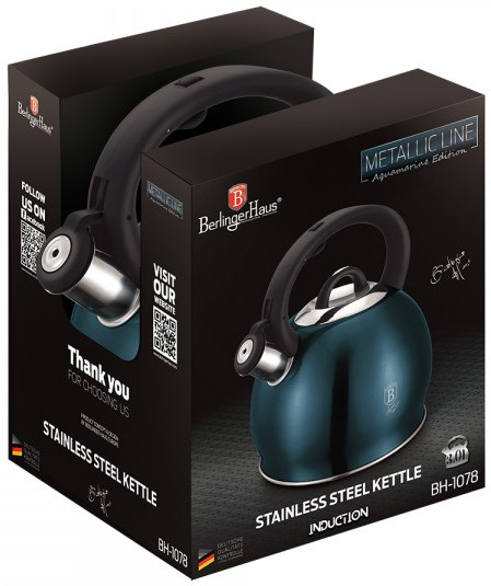 Berlinger Haus Чайник со свистком «Aquamarine Metallic Line»В данный момент этот товар отсутствует в продаже. Возможно, у нас найдется аналогичный или похожий товар здесь. Серия: Aquamarine Metallic Line Классический чайник со свистком изготовлен из нержавеющей стали 18/10 с покрытием. Тройное термоаккумулирующее дно обеспечит комфортное использование долгие годы. Эргономичная анти скользящая ручка. Свисток открывается кнопкой на ручке, что обеспечит удобство и комфорт использования. Яркий дизайн сделает чайник прекрасным декоративным элементом любой кухни. |