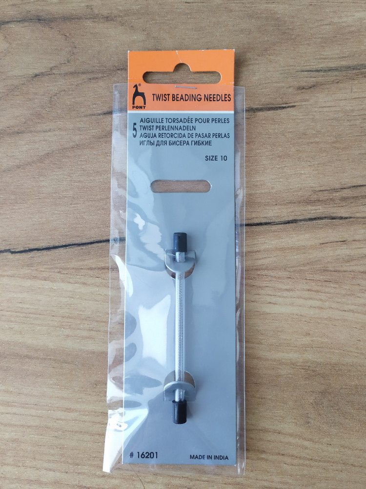 Брала номер 10. Ушко круглое, в него вставила нить Ирис. После протянула первую бисеринку и ушко сжалось, вытянулось. Потом я смогла его обычной иголкой снова растянуть и вставить новую нить.
