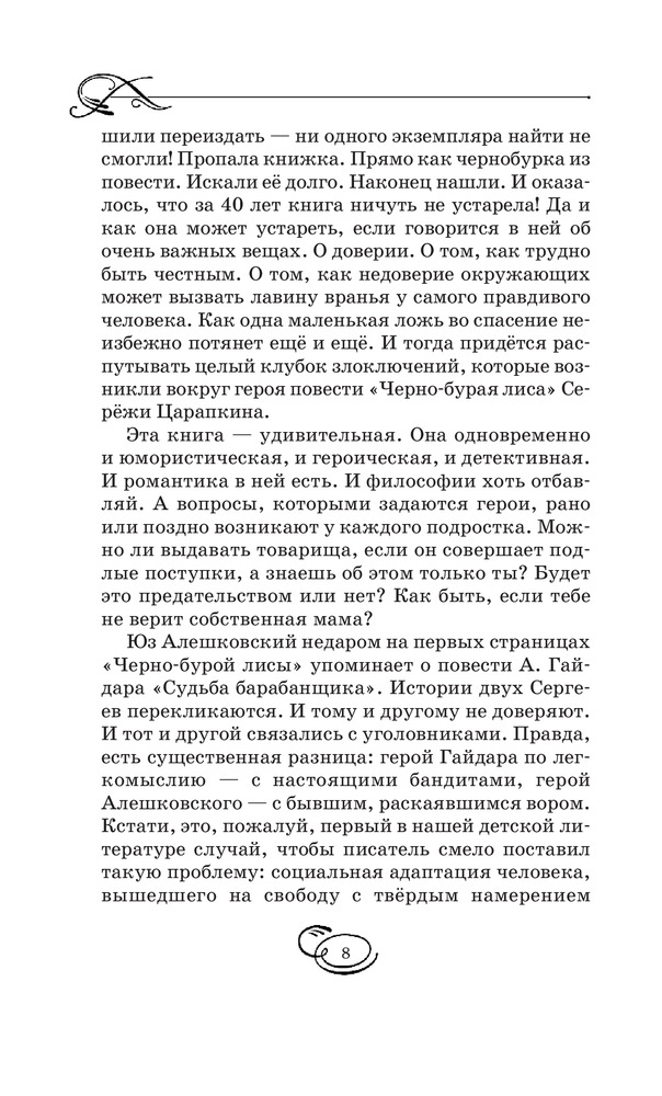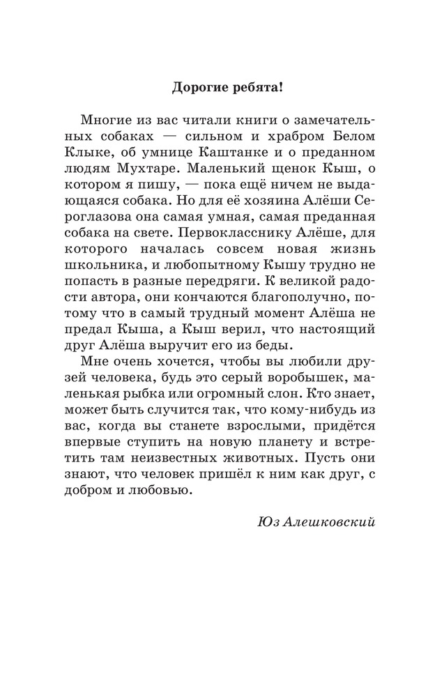 В данный том входят три замечательные повести Юза Алешковского: «Кыш, Двапортфеля и целая неделя», «Кыш и я в Крыму» и «Черно-бурая лиса», а также восемь отличных рассказов о детях, о взрослых и их разных друзьях-животных.