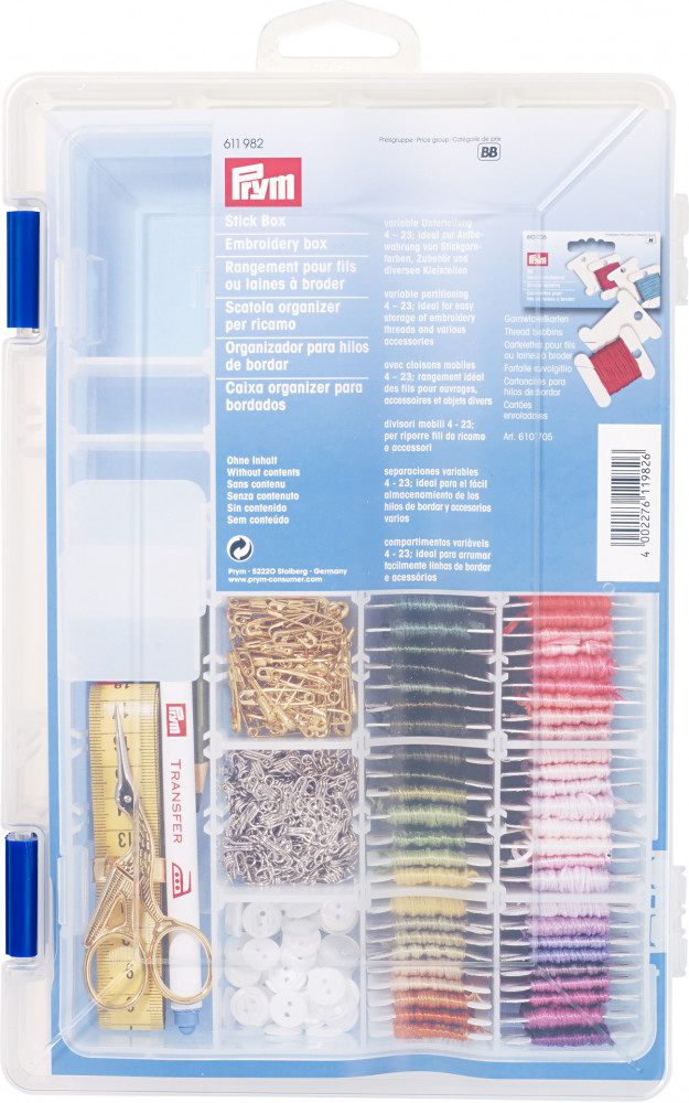 Prym Органайзер для вышиваниякрепкий пластик регулируемые отделения большая вместимость В данный момент этот товар отсутствует в продаже. Возможно, у нас найдется аналогичный или похожий товар здесь. Все необходимое для вышивания — под рукой! Органайзер помогает организовать хранение ниток для вышивания, принадлежностей и различных мелочей для рукоделия. Количество отделений органайзера для вышивки гибко регулируется от 4 до 23: благодаря этой особенности в нем удобно хранить изделия самого различного формата и в различных количествах. Через прозрачные пластмассовые стенки органайзера с прочной застежкой сразу видно, какие принадлежности в нем лежат. Органайзер без содержимого. |