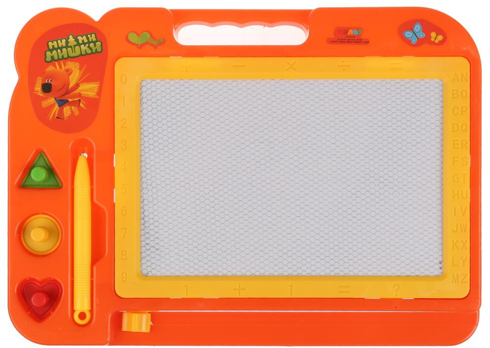На яркой магнитной доске с изображениями любимых персонажей детей из мультфильма «Ми-ми-мишки» рисовать будет ещё интереснее! Если закончилось место, просто сотрите нарисованное специальным рычагом сбоку. Доска снова чистая и можно продолжать творить! Удобная ручка позволяет брать досочку с собой на прогулки и в поездки. Игра с магнитной доской развивает фантазию и воображение, творческое мышление, мелкую моторику.