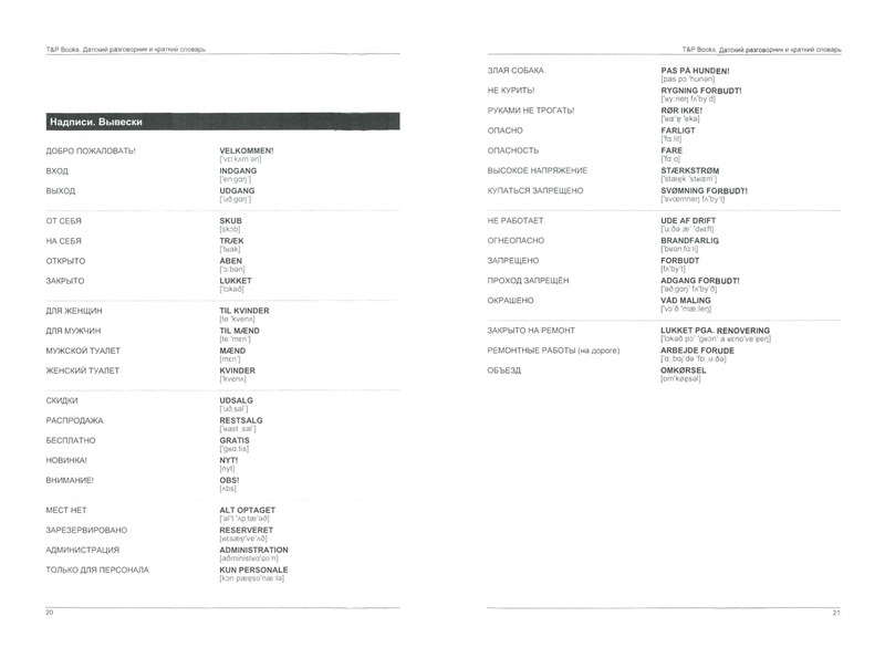 Русско-датский разговорник. Самые нужные фразы. Краткий словарь. 1500 словВ данный момент этот товар отсутствует в продаже. Возможно, у нас найдется аналогичный или похожий товар здесь. Коллекция туристических разговорников «Всё будет хорошо!» от издательства Т&Р Books предназначена для путешественников, выезжающих в заграничные турпоездки и командировки. Разговорники содержат самое главное, что нужно для минимального общения. Это реальный набор фраз для «выживания» заграницей. Также отдельным блоком в книге представлен небольшой словарь, который содержит более 1500 полезных слов, расположенных в алфавитном порядке. Словарь включает в себя большое количество гастрономических терминов и будет очень полезен при заказе блюд в ресторане или покупке продуктов в магазине. |