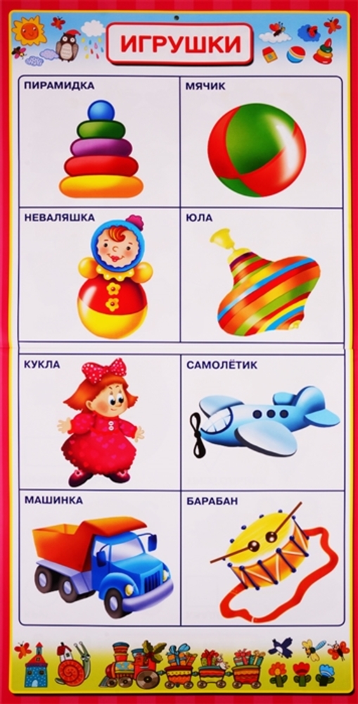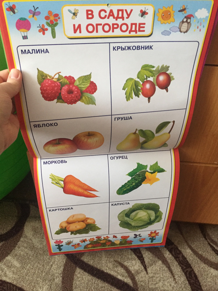 Очень хорошее пособие! Повесила, чтобы ребёнок смотрел и проговариваю ему. Первые листы: алфавит, цифры, там уже животные, одежда, члены семьи. Советую 👍🏻