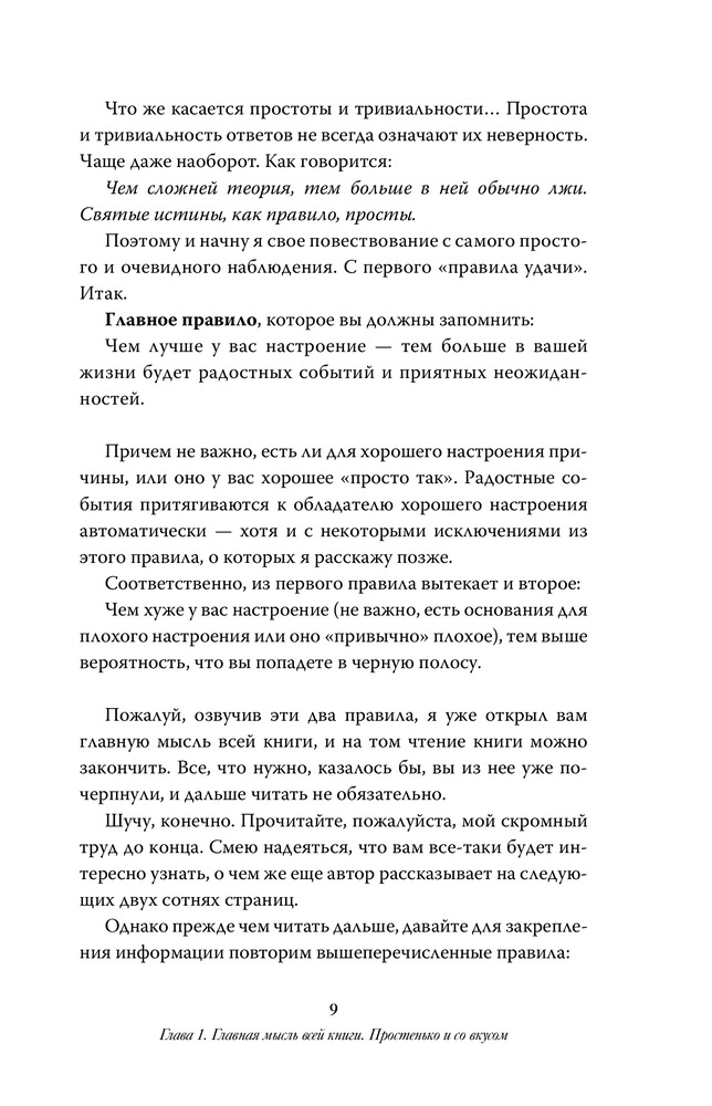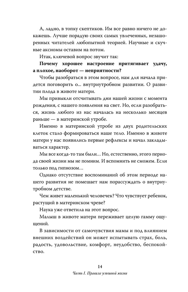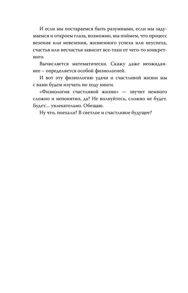 Очень полезная книга. Несмотря на достаточно простую подачу, автор описывает достаточно интересные и полезные законы бытия и жизни. Переосознал некоторые вещи, стал проще относиться к жизненным проблемам и неурядицам. Способствует позитивному мышлению, что очень не хватает в нынешних реалиях. Рекомендую всем, и продвинутым, и начинающим свой путь в метафизике позитивного отношения к жизни. После прочтения понаблюдайте за динамикой событий в жизни.