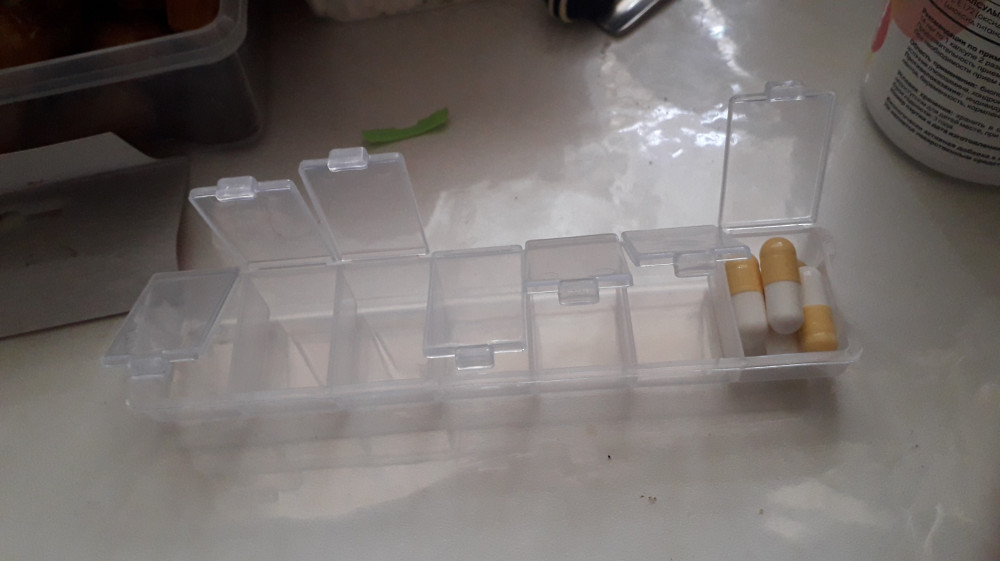 Использую как таблетницу, подписала маркером дни недели.