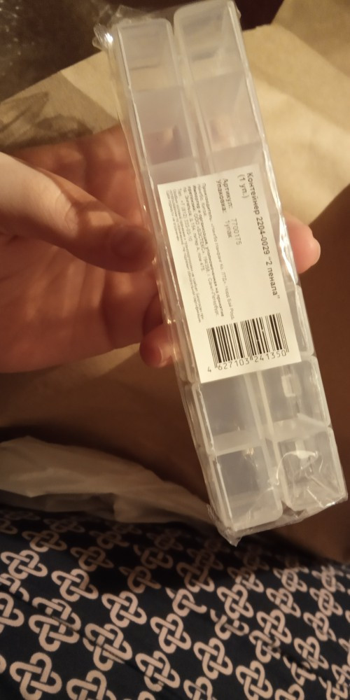 Удобный пенальчик. У каждой ячейки своя крышечка. В одну ячейку поместилось 5 капсул. Подойдет для пуговиц, бисера. Рекомендую