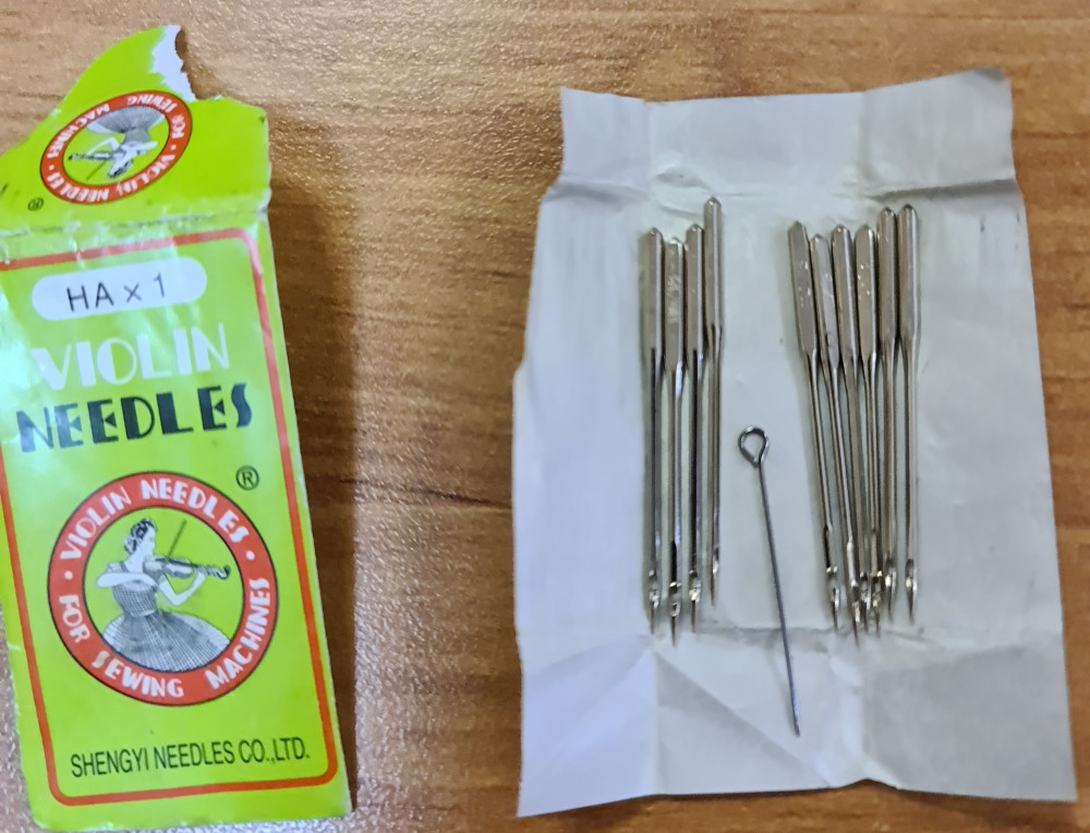 Швейные иглы для плотной ткани. На мой взгляд, отличное приобретение за номинальную стоимость. Но, если шить шифон, то эти иглы не подойдут -толстоваты. Булавочная игла -для сравнения.