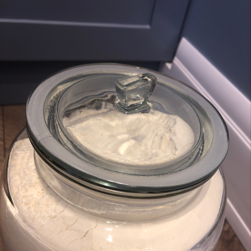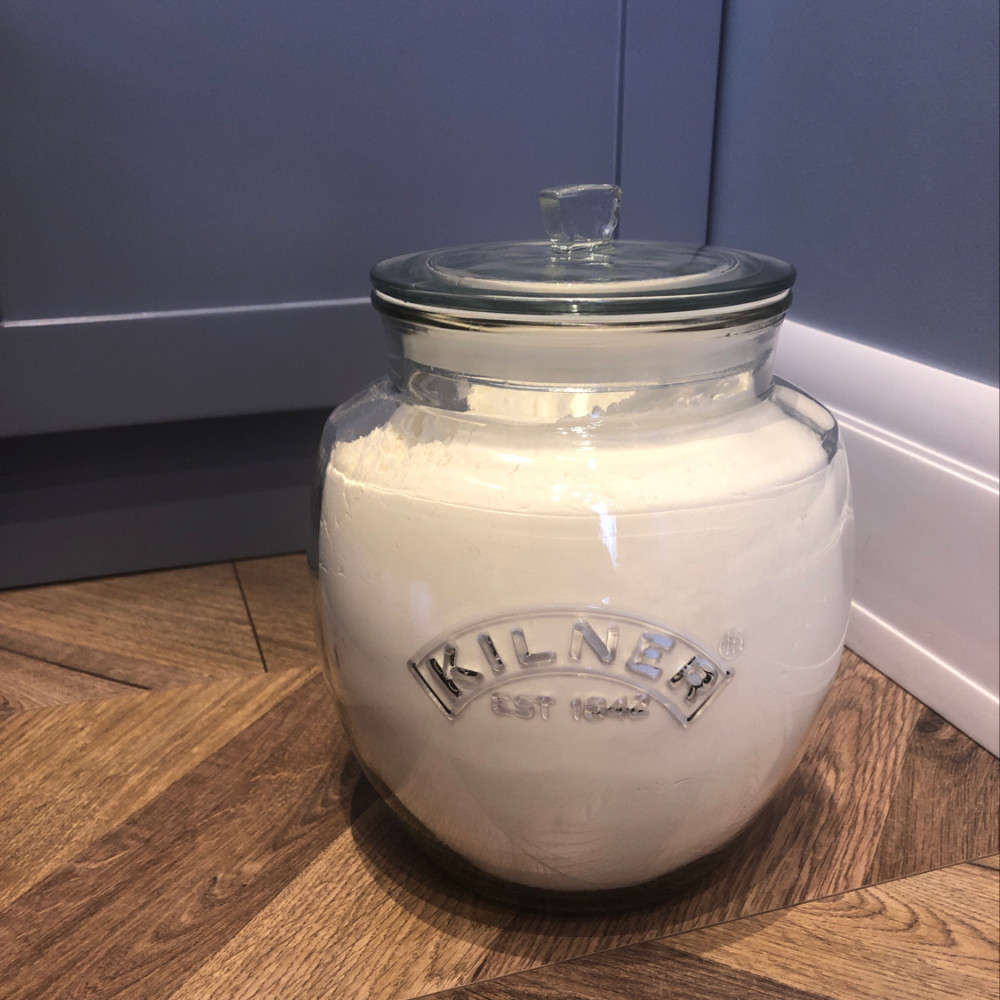 Крышка плотно закрывается, помещается больше 1 кг муки:))