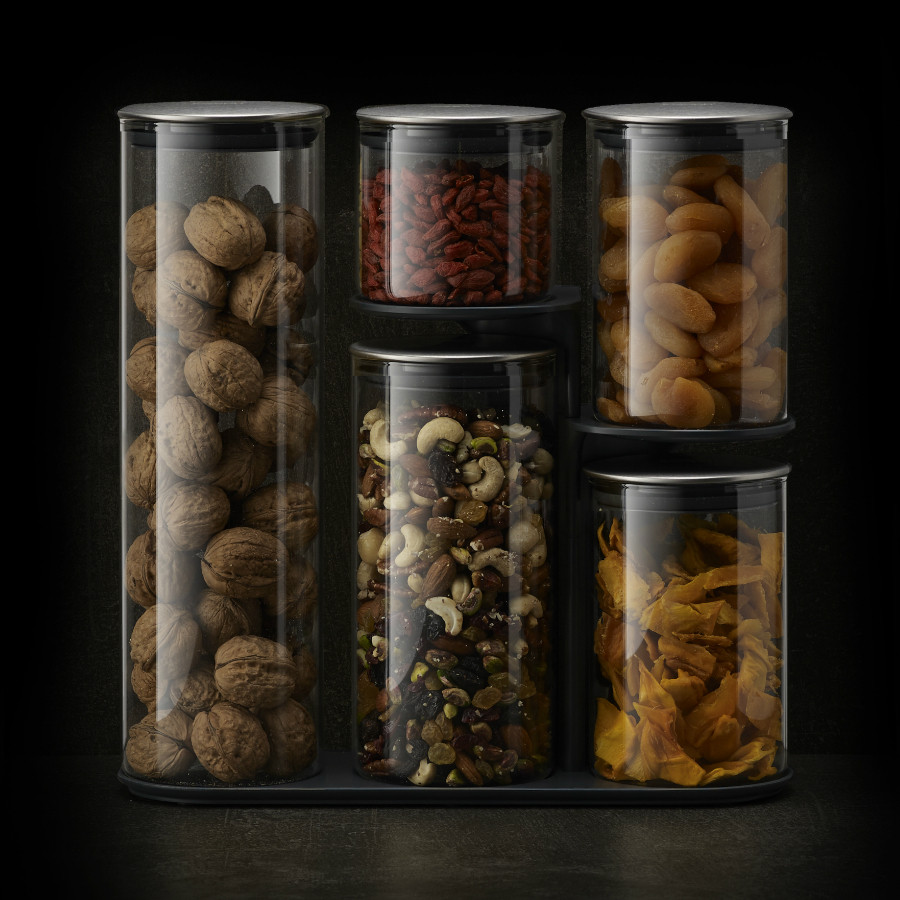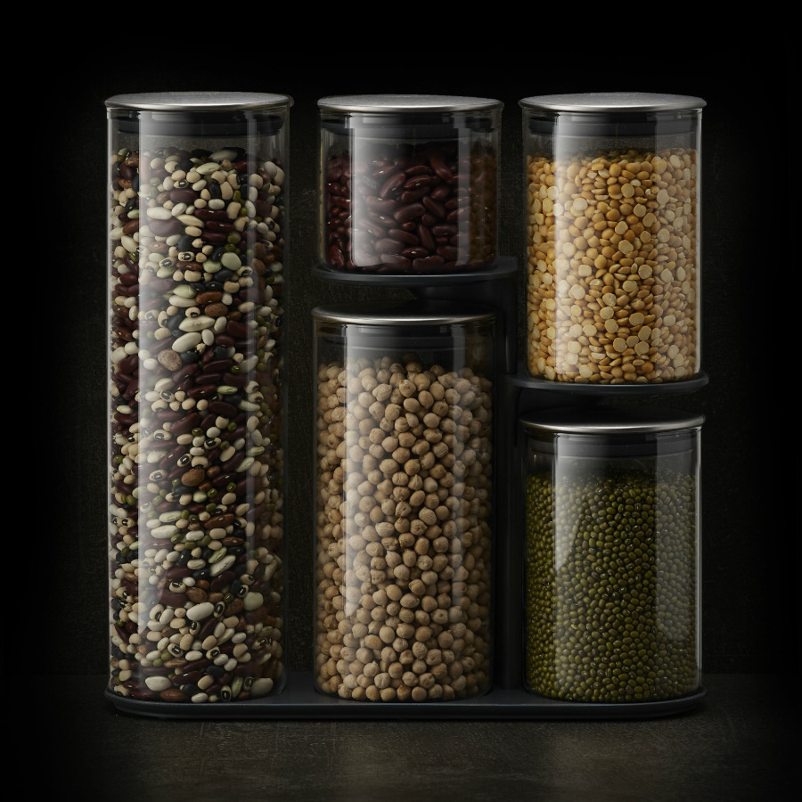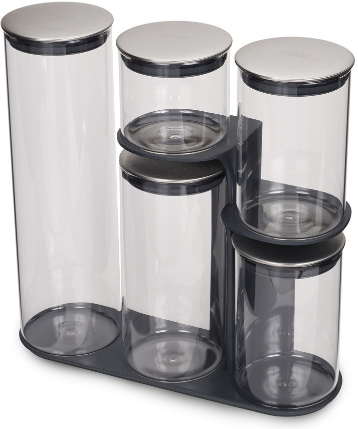 Набор из 5-ти емкостей для хранения станет многофункциональной составляющей на вашей кухне. Он помогает поддерживать порядок и компактно хранить сыпучие продукты под рукой. Эргономичная подставка позволяет сэкономить пространство на кухонной поверхности и обеспечивает легкий доступ к любой банке.
