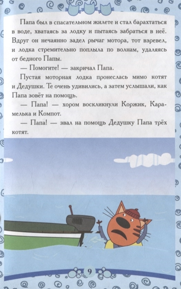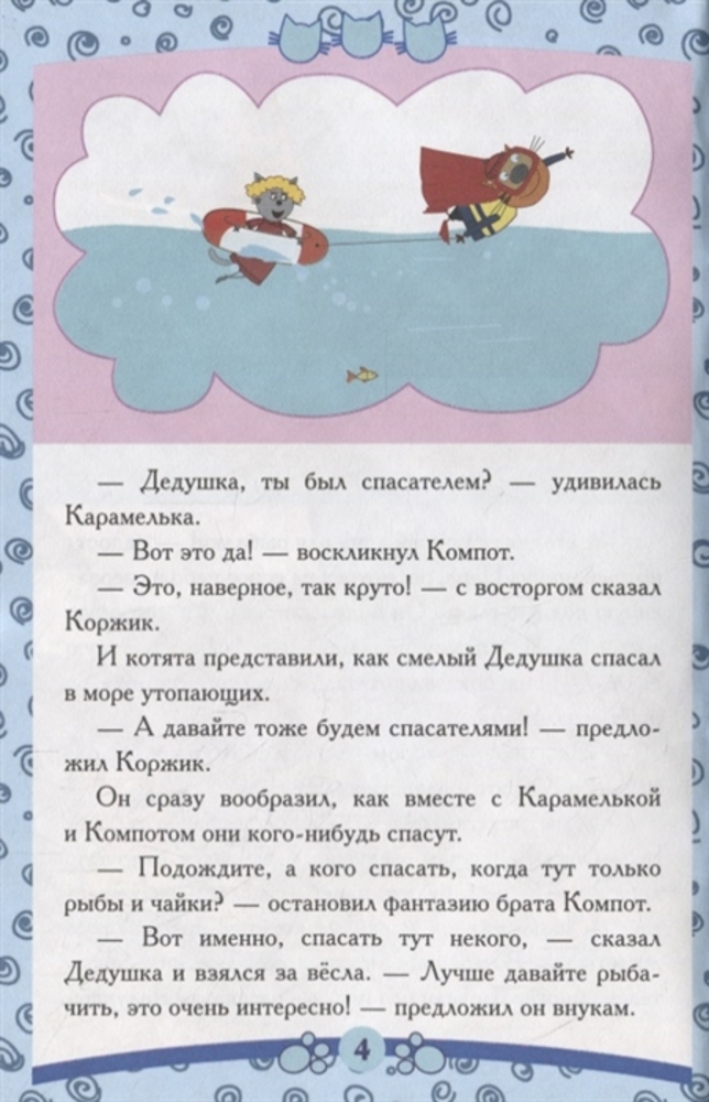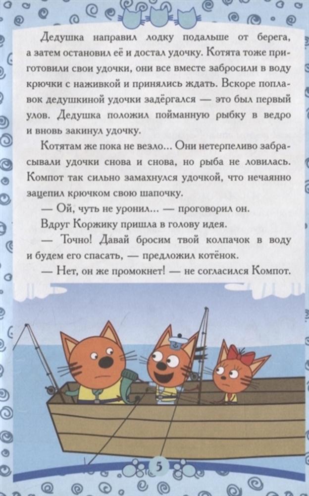 Интересная книжка. Детям понравилась. Единственный минус - мягкая обложка. До этого покупали другую книжку из серии "Три кота", переплёт, страницы были твёрдыми.
