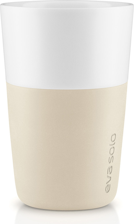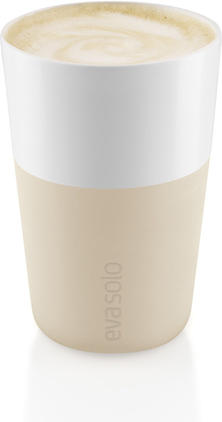 Чашки для латте от Eva Solo рассчитаны на 360 мл — классическую порцию напитка (с учетом шапки молочной пены) и стандарт для большинства кофе-машин. Изделия выполнены из фарфора, дополнены силиконовым чехлом, который легко снимается. За счет этого чашки с горячим содержимым удобно держать в руках.