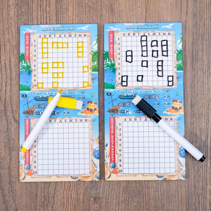 Игра классная. 2 поля, которые удобно держать в руке. Единственно, маркеры почти высохшие, надолго их не хватило