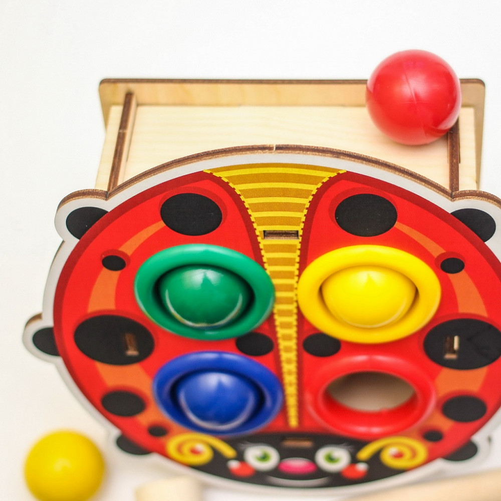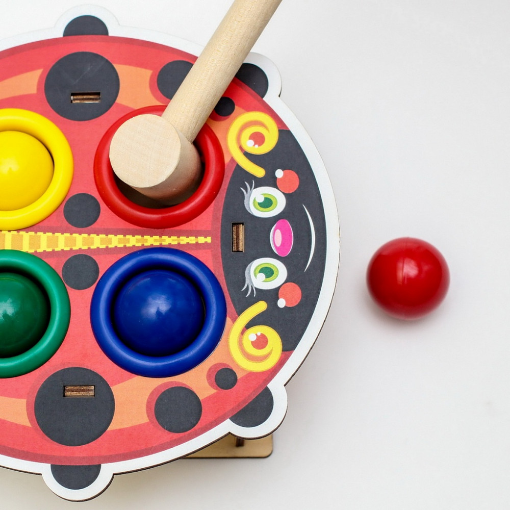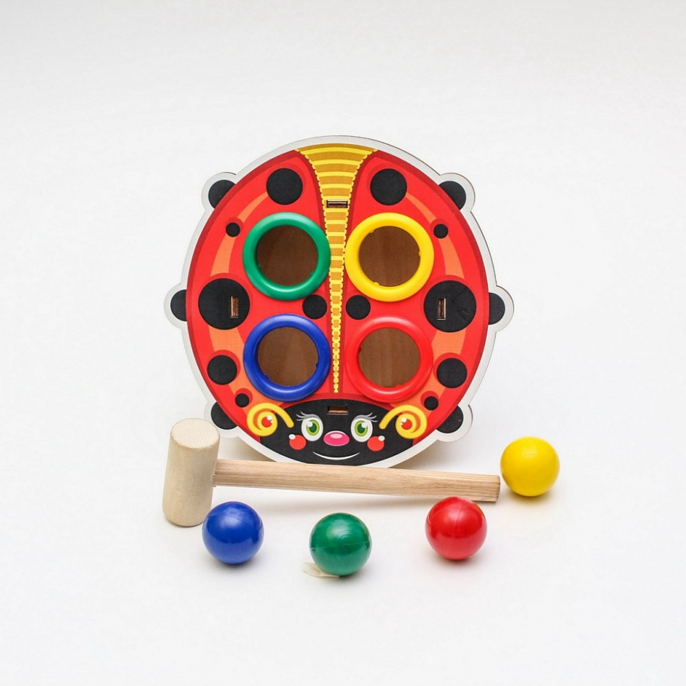 Стучалка довольно качественная, яркая. Ребёнок стучит с удовольствием. Шарики не падают но с легкостью выстукиваются. Можно немного по импровизировать и сделать ее более тугой. Как итог ребёнок доволен👍🏻