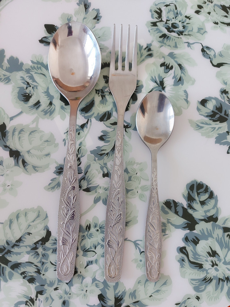 У меня набор на 12 персон (столовые ложки, вилки и чайные ложки), но одна столовая ложка потерялась. И когда я увидела на flip, что можно купить их поштучно, я была рада. Спасибо flip. Отличный набор, не темнеет пользуюсь четвёртый год. А они как новые. И узор красивый на ручках.