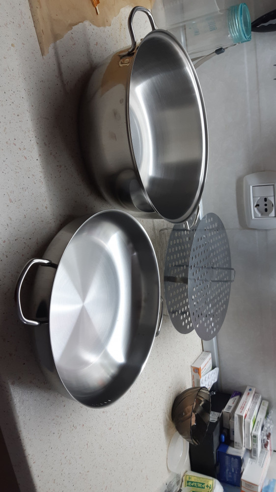 Понравилась кастрюля! Смотрится красиво, форма и размер удобные. Можно использовать для блюд на пару, для I и II блюд, а крышку - как сковороду. Немного дно тонковатое, но вполне подходит.